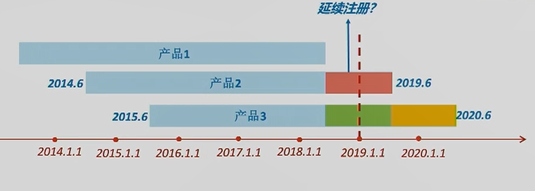 問:若產(chǎn)品2在藍(lán)色箭頭時間點進(jìn)行了延續(xù)注冊,定期風(fēng)險評價報告要如何提交呢? 答:這是一種特殊情況。在1號令生效時,該產(chǎn)品已經(jīng)處于延續(xù)注冊狀態(tài)。所以對于這類情況,2019年的年度定期風(fēng)險評價報告就不用提交了。